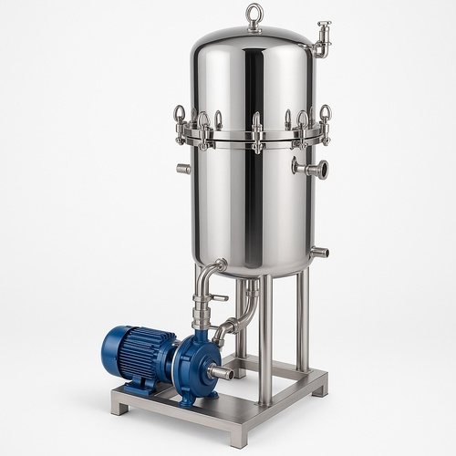 Semi-automatic Zero Hold Up Sparkler Filter Press with >3000 litres/hr capacity. Features >50 plates, 400-500 sq ft filter area. Material and dimensions customizable.