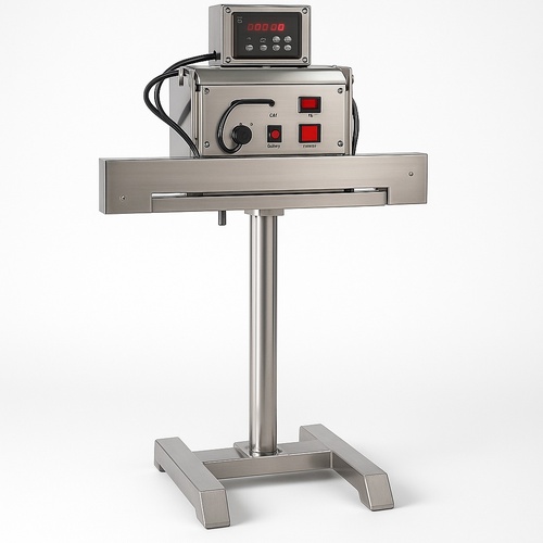 Semi-automatic stainless steel tube sealing machine. Features 45 tube/min capacity, 240V operation, polished surface, and dimensions of 500x600x1200mm. Made in India.
