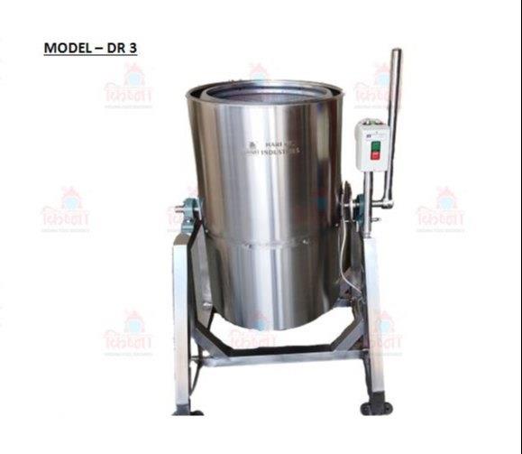 Semi-automatic SS304 tilting dryer machine with 25-30 Kg batch capacity. Dimensions: 55" H x 47" W x 36" L. Weighs 138kg.