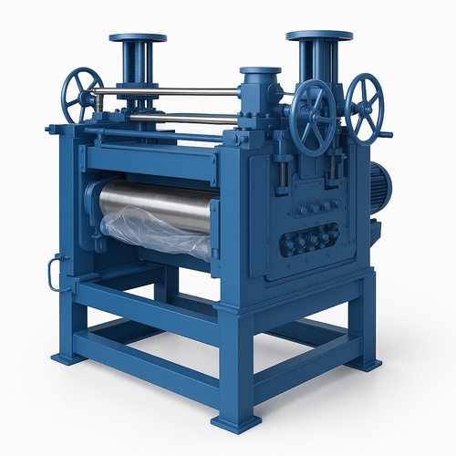Steel fabricated semi-automatic leveling machine for CR and HR coils, handling thicknesses from 0.5mm to 20mm with VDF variable drive.