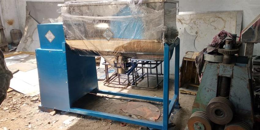 Semi-automatic tea powder mixing machine for industrial applications. Features 220V electrical supply, 15-25 RPM speed, and customized design. Made in India.