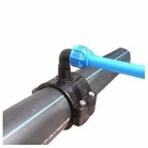 Polypropylene service saddle for pipe connections. Durable material, designed for reliable fluid transfer applications. Provides secure and leak-free joint.