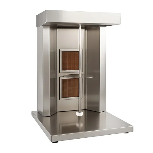 Compact tabletop unit for shawarma preparation. Ideal for smaller kitchens or food stalls. Durable construction for commercial use. Easy to clean.