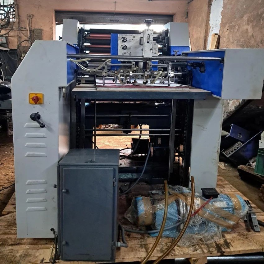 Cast iron construction, sheet fed printing machine with single colour output. Handles 18x25 inch maximum paper size. Features 3 HP motor, 22 ink rollers, and a printing speed of 1000 IPH.
