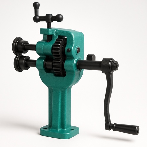 Manual sheet grooving machine with a cast iron body. Weighs 5-7 kg, operates manually, and grooves up to 4 inches wide. Suitable for 20-24 SWG production.