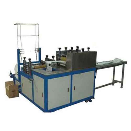 Automatic non-woven shoe cover machine with 5.5 KW power consumption. Operates at 20KHz ultrasonic frequency, producing 40-60 pieces per minute.