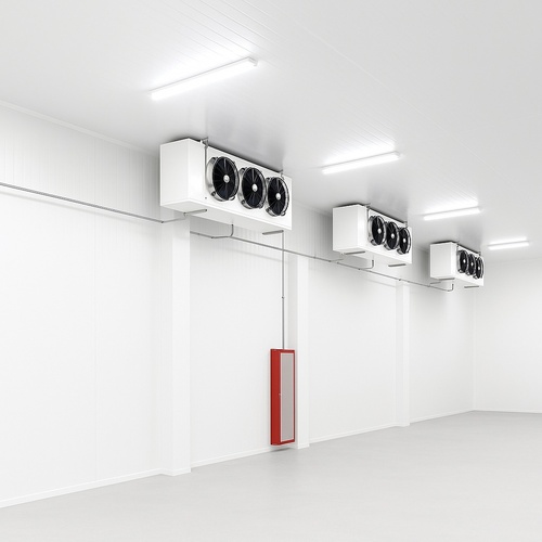 Industrial cold storage plant with 440V, 50/60 Hz, three-phase electric power. Operates efficiently within a 2-8 Degree C temperature range.