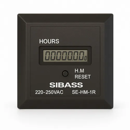 Single phase digital hour meter, 220-250VAC. Features industrial application, black square housing, and a 230VAC operation voltage. Minimum order quantity of 5 units.