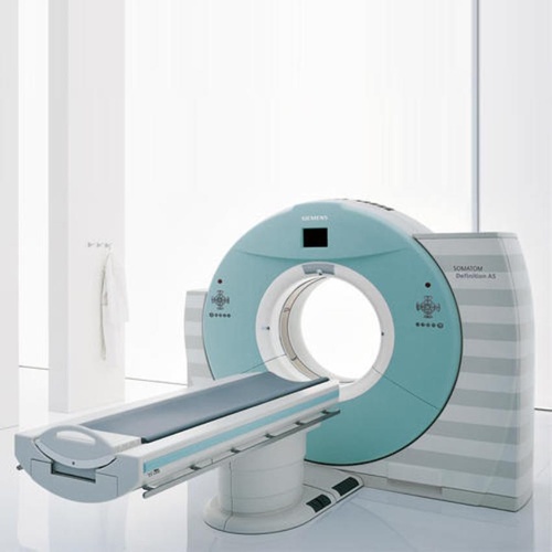 New Siemens computed tomography scanner offering 100 scans/sec. Features low maintenance, accurate readings, and corrosion resistance for hospital applications.