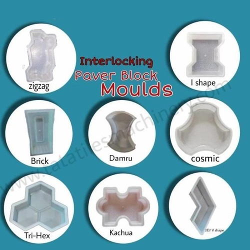 White silicone plastic paver block mould with a zig zag shape. Features multiple patterns and 0.31-0.5 Sq.Ft coverage. Weighs 1.70gm.
