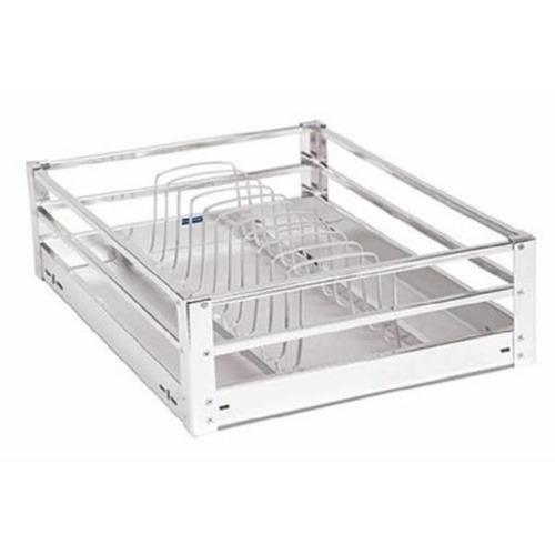 Silver SS kitchen basket with chrome plated finish. Minimum order quantity of 10 pieces. Durable and practical for kitchen organization and storage.