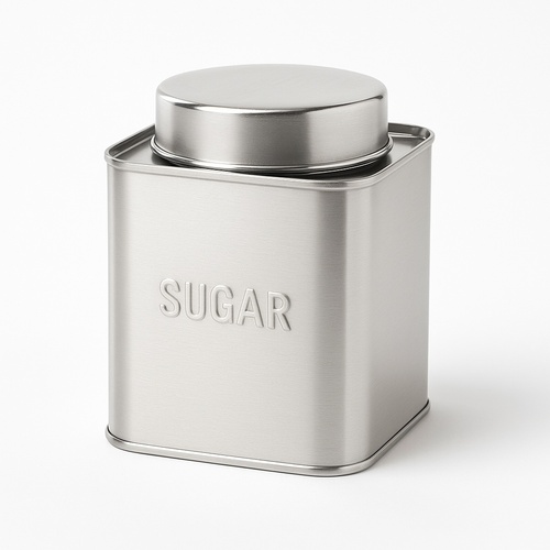 Round silver metal food storage container with a capacity of 300-500g. Suitable for home use, customizable options available.