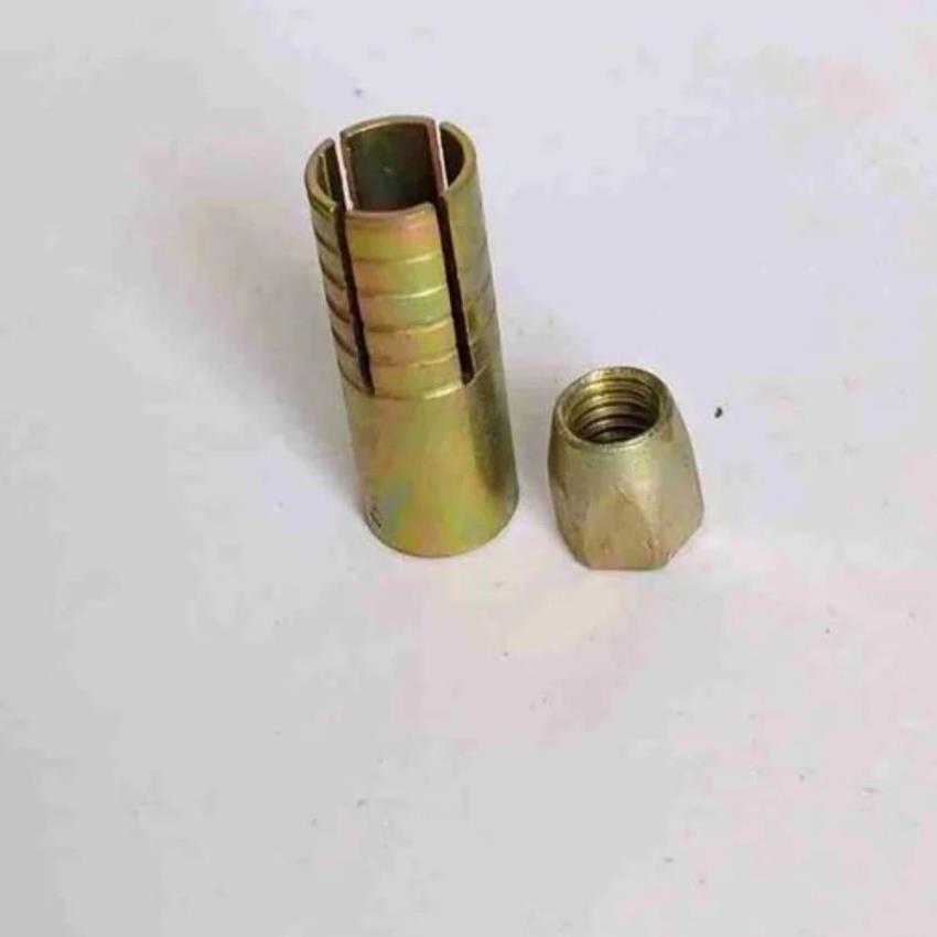 Silver mild steel sleeve anchor with flange nut, 35mm length. Removable after installation, fire resistant. M.S. material grade, 100 quantity per pack.