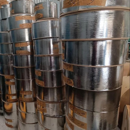 Silver, plain, metallized polyester paper roll for paper plate making. Waterproof, coated on the upper side, suitable for higher temperatures.