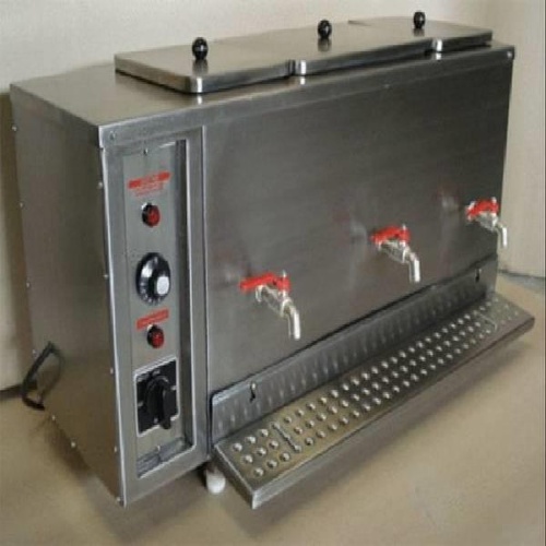 Semi-automatic tea/coffee dispenser, 10 L capacity. Features a sleek silver finish and durable stainless steel construction. Made in India for reliable performance.