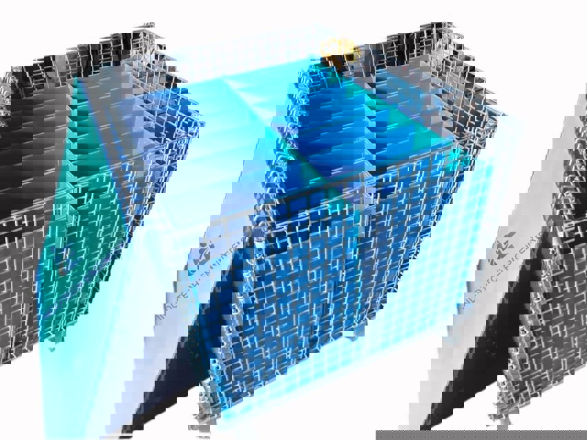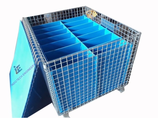 Silver welded wire mesh containers for industrial and warehouse use. Available in SS, MS, or Aluminium with powder coating. Standard and customized sizes.