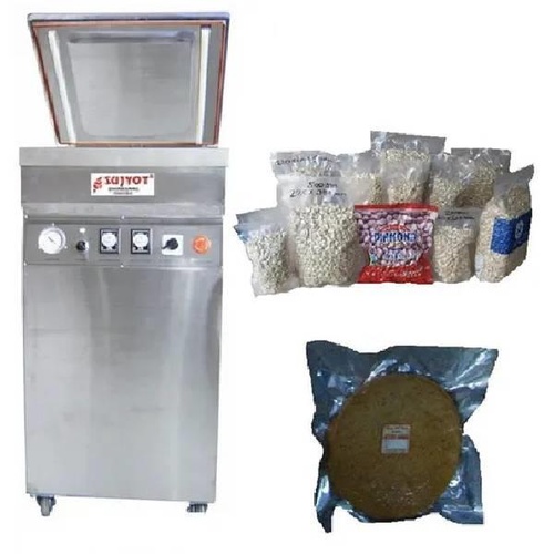 Semi-automatic single chamber vacuum packing machine. Features 390 mm sealing length, 750 W sealing power, and 220 VAC single-phase operation. Constructed from durable stainless steel for industrial use.