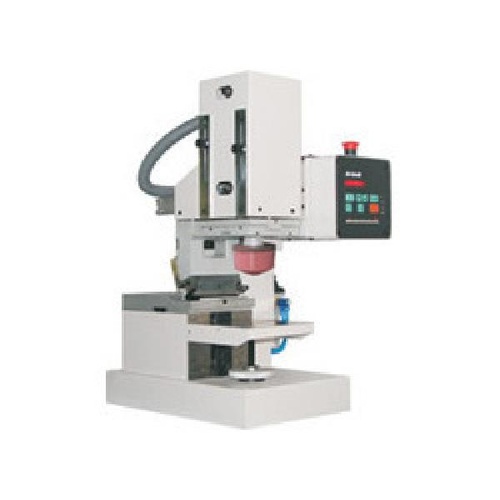 Single color pad printing machine with an open ink tray. Designed for precise and efficient single-color printing applications.