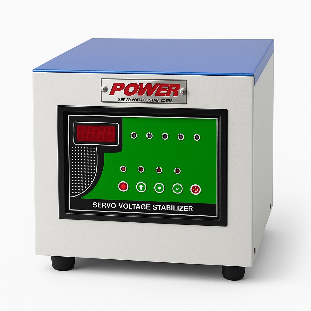 Single Phase 4KVA Digital Servo Voltage Stabilizer, air-cooled. Automatic, floor mounting. Input 140-280V, output 230V +/-1%. One-year warranty. Dispatch within 7 days.