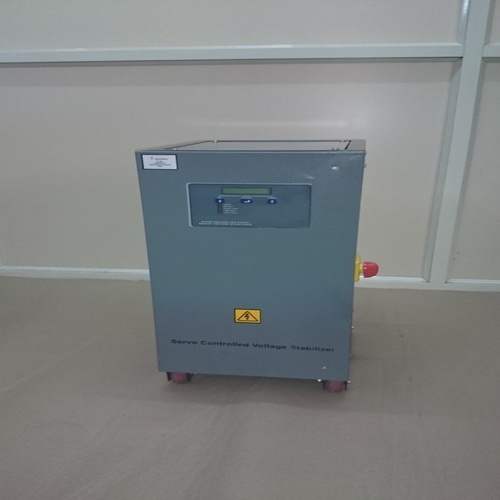 Single phase air-cooled stabilizer with 125-280V input, 220-240V output, 15 KVA load capacity, and 98% efficiency. Features automatic reset and CNC IP20 cabinet.