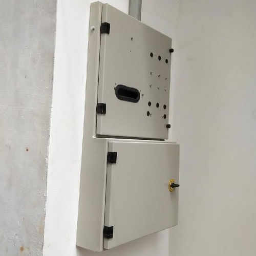 Rectangular wall-mount meter board for single-phase MCCB, 63A frequency. Constructed from JSW sheet, lockable, open type, and suitable for electrical applications.
