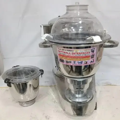 Semi-automatic stainless steel mixer grinder with 1 HP motor. Consumes 2 kWh. Suitable for grinding spices, making chutneys, and blending fruits/vegetables.