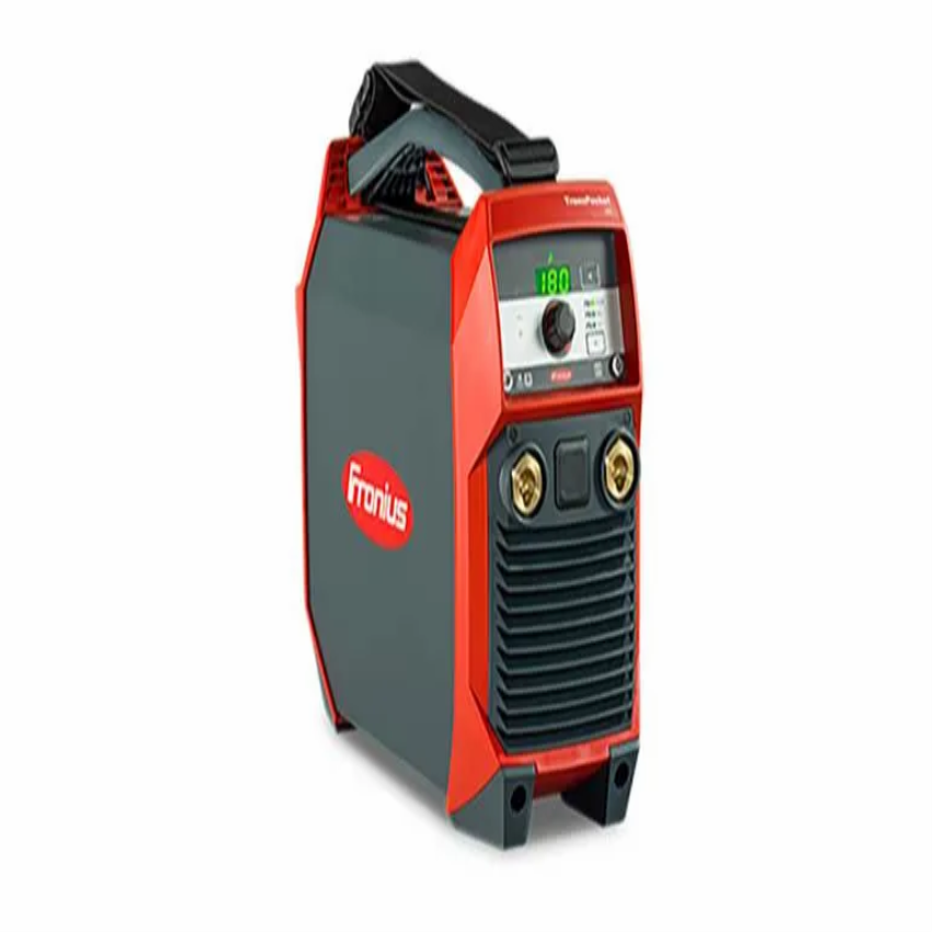 Single-phase electrode welding machine, 180 Amps. Operates on 230V, 50-60Hz. Compact and portable with a weight of 8.8kg. Suitable for Transpocket 180 welding.