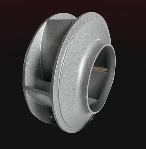 This one-piece aluminium impeller is designed for blowers. It's a component for air movement equipment, providing robust functionality within a blower system. Specifications regarding size and specific blower compatibility are essential.
