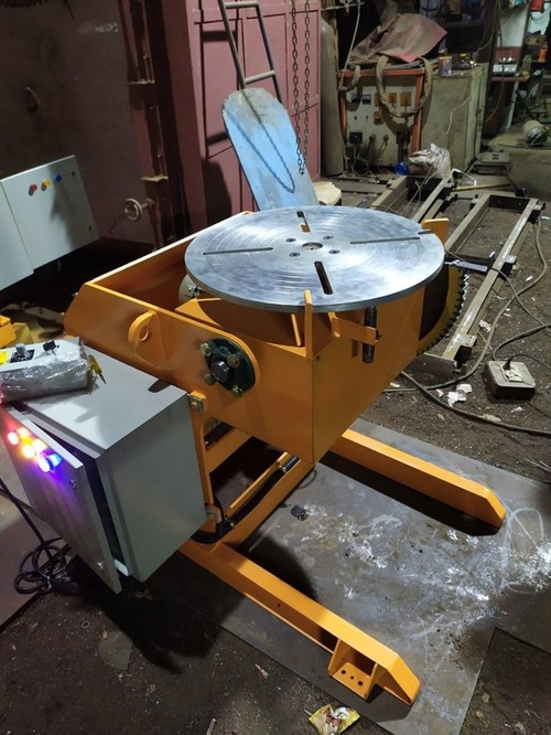 Semi-automatic mild steel single-sided rotary welding positioner. Model FP500, orange color, for circular and angular welding. Packaged in a wooden box.