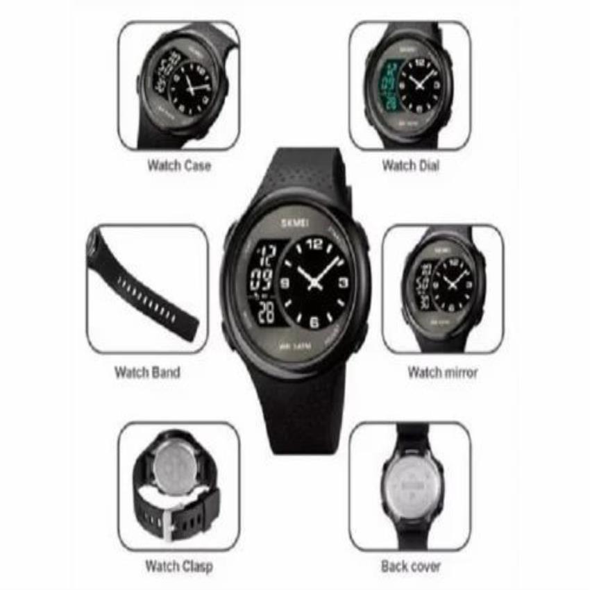 Skmei dual-time wristwatch for men featuring two separate time displays. Offers versatile timekeeping functionality for daily use. Durable and reliable accessory.
