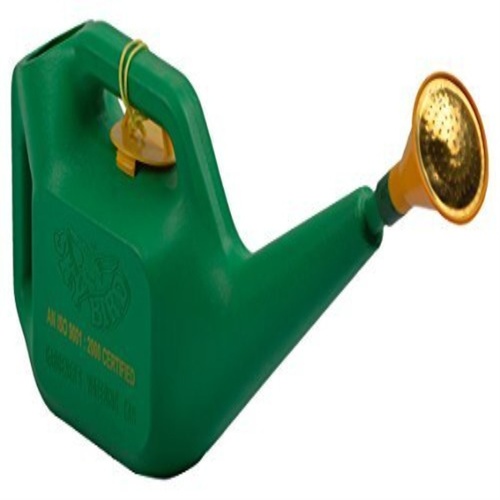 5-liter green plastic watering can. Features a sturdy handle and spout for easy pouring. Suitable for indoor and outdoor plant care. In stock.