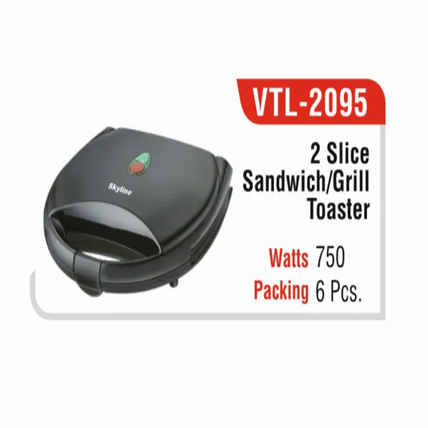 Skyline 2 slice sandwich grill toaster, 750W. ISI Certified, with a 1-year warranty. Made from durable metal and plastic materials.