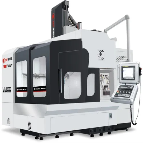 SKYMASTER VM2018A double column vertical CNC machine. Features X-axis travel: 2300mm, Y-axis travel: 2400mm, Z-axis travel: 800mm, rapid traverse X: 15000, Y: 20000.