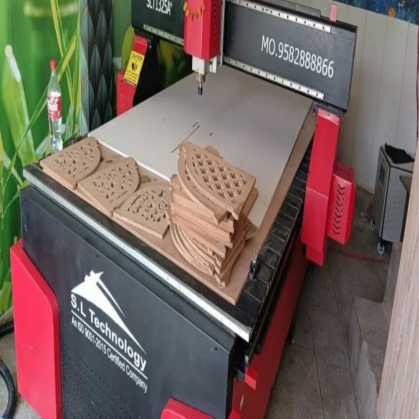 This SLT CNC wood router machine features a 6 kW spindle, ideal for woodworking applications. It offers precise cutting and shaping for various wood materials.