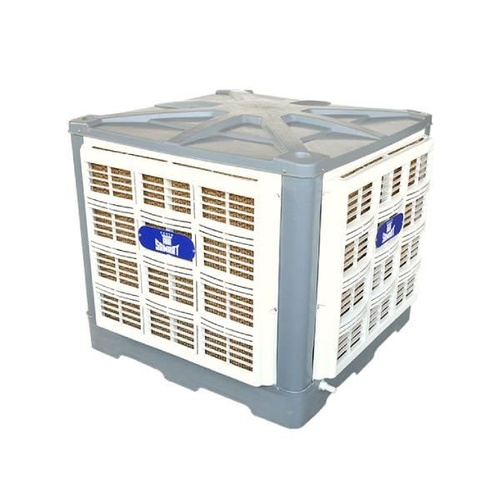 Industrial Down Flow Air Cooler, Model SM 1.1. Delivers 10500 CFM with 1.1 KW power. Features 3 fan blades and covers 1500 sq.ft.