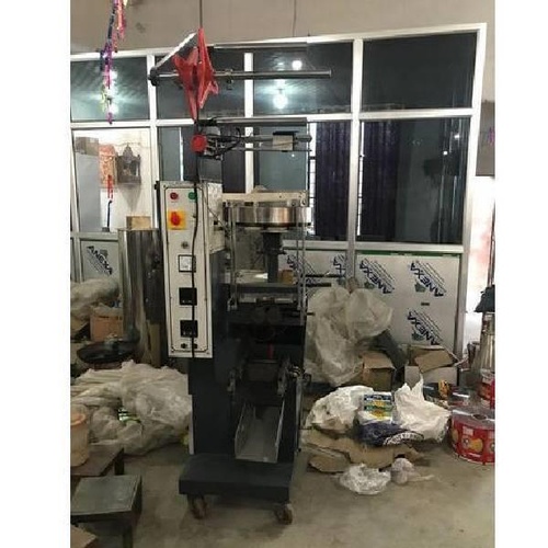 Electric powered snack packaging machine. Features 1-2 HP motor, handling 10-50 gram pouches with 2"-4" length.