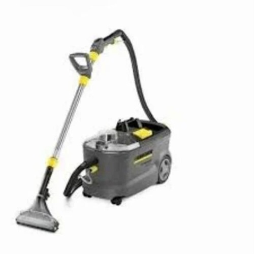 Powerful 1000 Watt dry cleaning machine for sofas. Features a 16L clean water tank, 12L dirty water tank, and includes a nozzle and hose pipe. Operates semi-automatically.