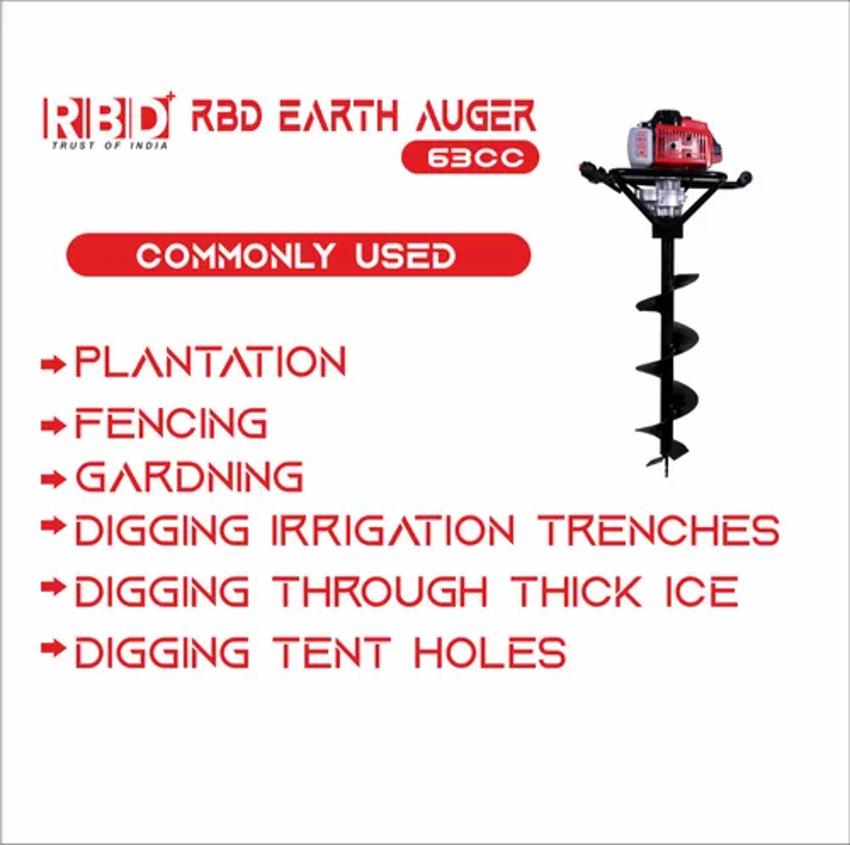 Automatic petrol soil auger machine, model RBD-EA52. Made in India. Suitable for planation hole preparation. Available for immediate order.