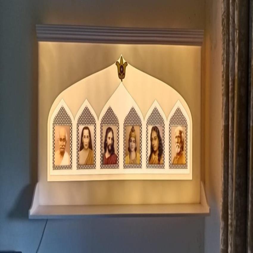 Solid Surface Altar for worship. Attractive modern style, white color. Backlit properties, 3 inches thick. Size: 4ftx2ft. Made in India.