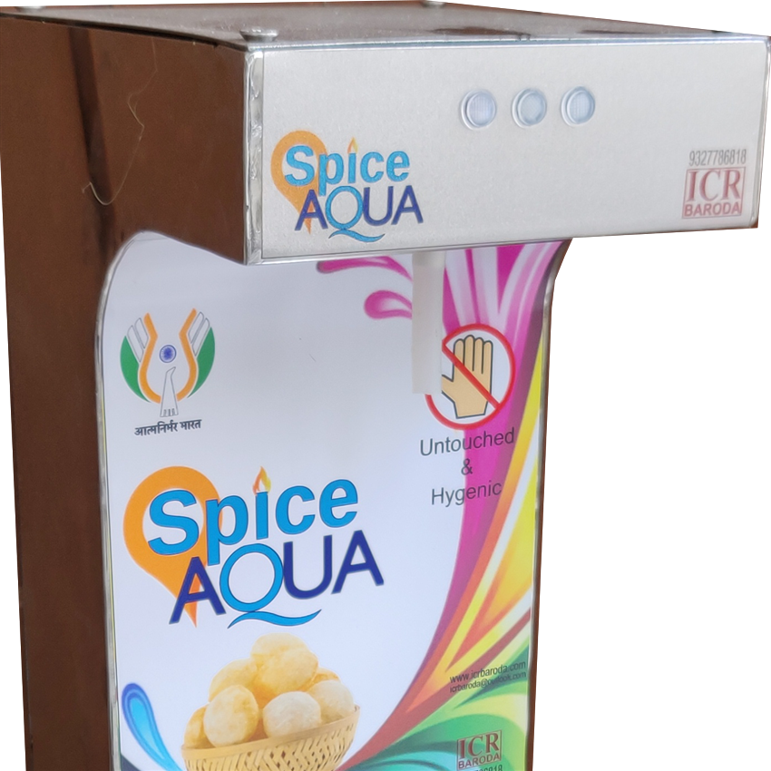 Digital control stainless steel vending machine for pani puri. Features 5mm nozzles, 12V power, unlimited filling, and a 5-year warranty. Model ICRP PVM.