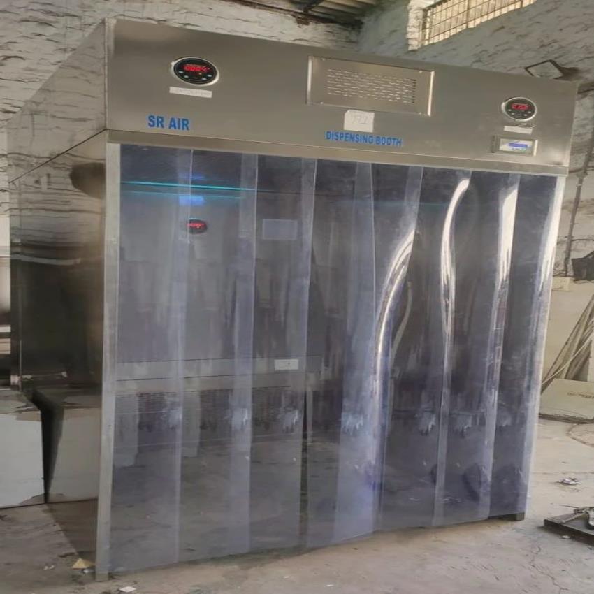304-SS dispensing booth with vertical airflow, 3x3x6 size, industrial application, and 100 capacity. Made in India.