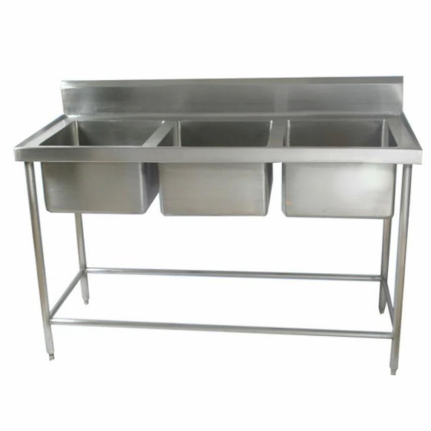 Portable, customized stainless steel three sink unit. SS304 material grade. Square shape. Available with 2-3 bowls. Ideal for new installations.