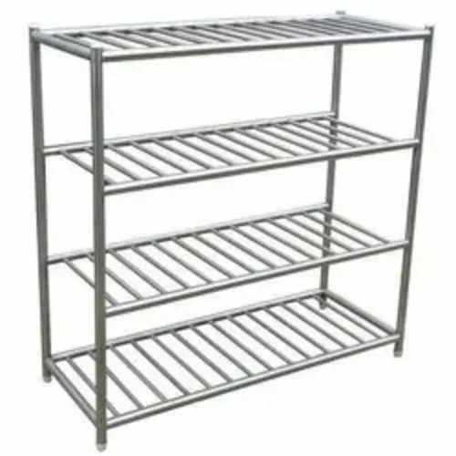 Silver SS304 stainless steel pot rack with a modern appearance. Features 3 shelves for organized kitchen storage. Minimum order quantity of 1.