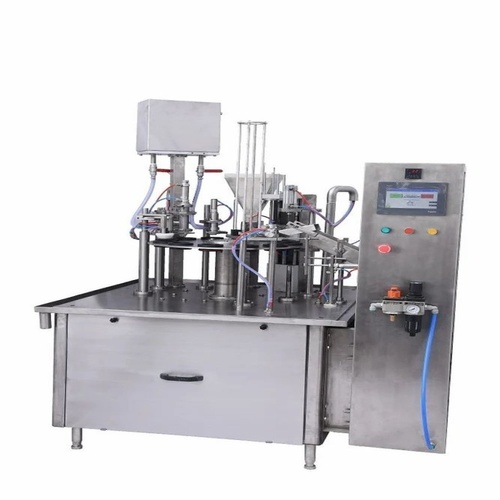 Automatic ice cream cup cone filling machine made of SS 304. Offers a capacity of 3000 cones/hr. Features polished surface finish and dimensions of 1500mm L x 1500mm W.