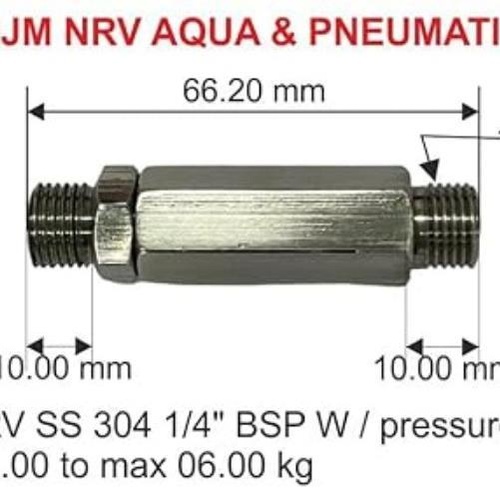 Stainless Steel 304 non-return valve with a 1/4" BSP connection. Available for immediate despatch with pouch packing. Road permit or way form is provided.