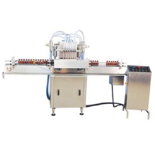 Industrial automatic beverage filling machine constructed from SS 304/SS 316. Operates on 415V, 3 phase power. Designed for efficient beverage packaging.