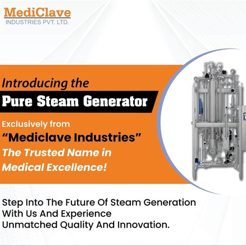 Pure steam generating machine constructed from SS 316 material. Capacity ranges from 100 kg/hr to 3000 kg/hr.