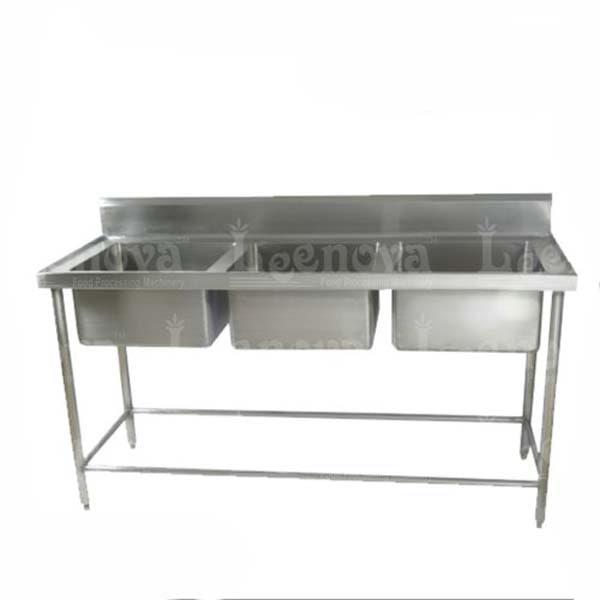 A commercial-grade SS sink unit measuring 72*24*34 inches. Constructed from stainless steel for durability and hygiene, suitable for various kitchen and food service operations.