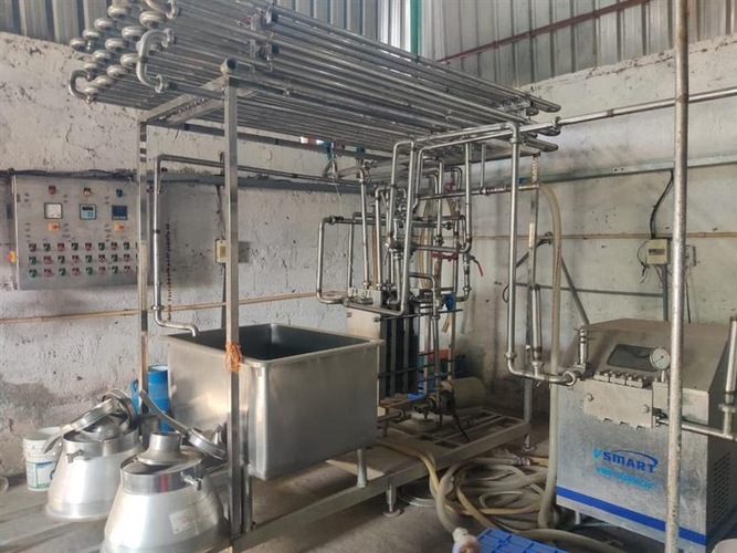 Automatic SS304 dairy processing equipment with 1500 LPH milk processing capacity. Three phase, 380V, 50 Hz operation. Made in India for reliable dairy production.