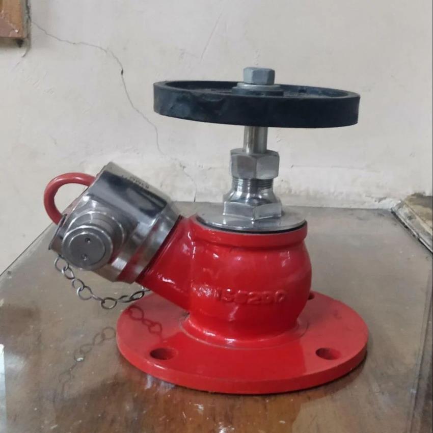 Stainless Steel Fire Hydrant Valve, 63mm size, manual operation. Connects to hydrant for firefighting water access. Max pressure 15 kgf/cm2, max temp 145°C.